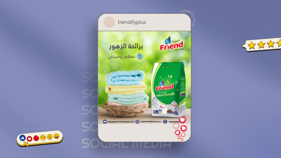 قمنا بتصميم مجموعة متكاملة من التصاميم التسويقية لشركة Super Friend Kimya المتخصصة في تصنيع المنظفات.